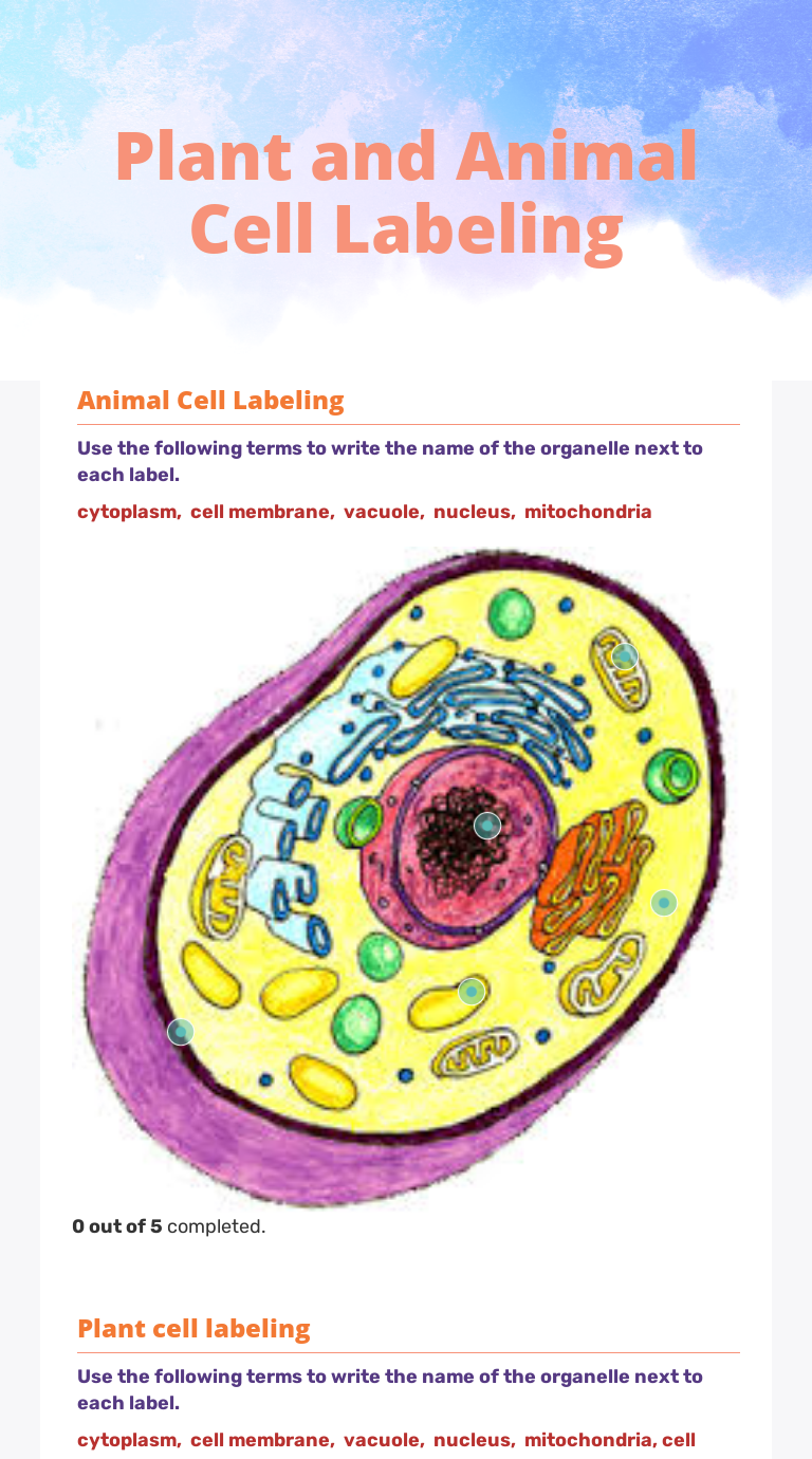 Interactive animal and plant cells. And animal cells by cutting and pasting the parts of the cell onto the cell templates. Color the animal cell picture. Learn about animal and plant cells with these printable worksheets. "animal and plant cells worksheets" (1 per student).