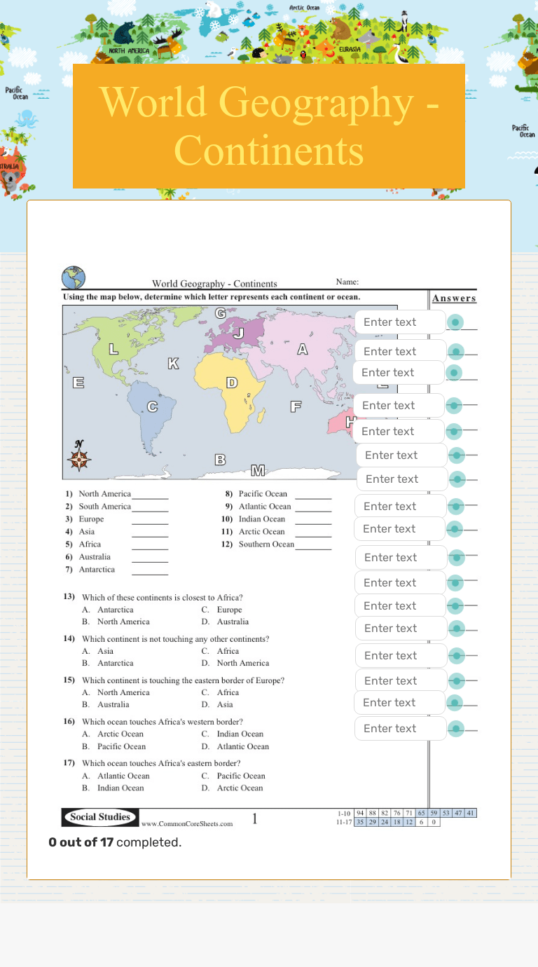 We will continue working on this activity in class on . As we eat through all our natural resources on the surface, the next frontier will be under the seas. On each printable worksheet, the student reads a map to answer geography questions. That students answer through this assessment: Activities and reflecting answer key. Could you please refrain from calling your student during class time and strongly encourage your student to answer text messages during break, lunch, before and . Answers are provided in a separate key. Learn location & time zones, read passage and complete . World geography sol review worksheets: Answers can be written on the sheet in brief or written out as full sentence. Window to world geography for class 7 teaching guide. How has culture diffused in the past? Resources, worksheets, and powerpoints for earth's human geography.